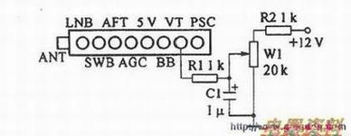 测高频器(H78G08-F9315B或F7708-S6626D)的调谐VT点,电压为2V,并不受频道键控制,伴音为静音状态。考虑到更换CPU成本较高且维修较长,因该机长期只固定接收1套节目,不经常变动等因素,于是采用手动调谐方式接收电视信号,方法如图所示。将调谐器的VT端至主板的连线断开,加接一只彩色电视机调谐用的多圈电位器(Wl)。该电位器固定在主板上原安装高频的部位,电位器轴从器的高频输出插孔伸出机壳约15mm,以方便调整接收。使用时,只需细心地调节该电位器,就能收视到良好的电视图像与伴音信号,达到播出要求。