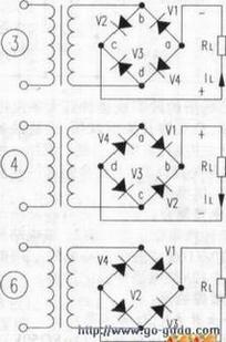 (4)图1中V4的正极与V1正极相连的a点为直流电的负极;图2中V4的正极与v3正极相连的d点为直流电的负极(两正为直流电的负)。