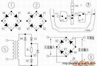 (2)ab与cd、ad与be为相对的两个臂,且V1与V3、V2与v4二极管(正或负极)朝向一致。