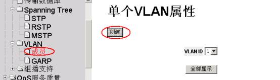 进入配置界面-VLAN-成员-属性中点击“创建”按钮创建一个VLAN。