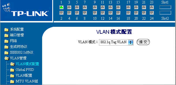 步骤1:在VLAN管理下选择VLAN配置模式为802.1q Tag VLAN