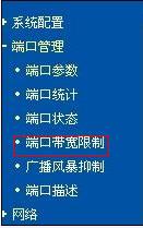 1、登陆交换机,选择“端口管理”——“端口带宽限制”。