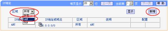 选择“区域”-“LAN”,然后点击右面的“新增”按钮,如下图: