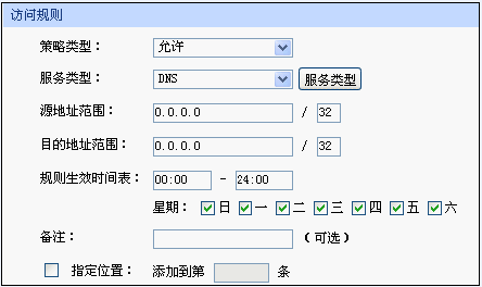 访问控制通过数据包的源IP地址、源端口、目的IP地址、目的端口以及生效时间来控制局域网内的主机对外网的访问权限。
