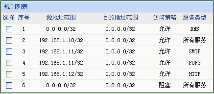 5、访问控制缺省策略为“允许”,所以需要再添加一条策略禁止其他服务