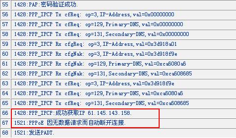 出现图4的日志时也只需要设置路由器自动拨号,等待一段时间即可自动拨号成功。
