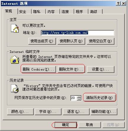 在弹出的窗口中,删除Cookies,以及清除系统历史记录后,将电脑重启即可。