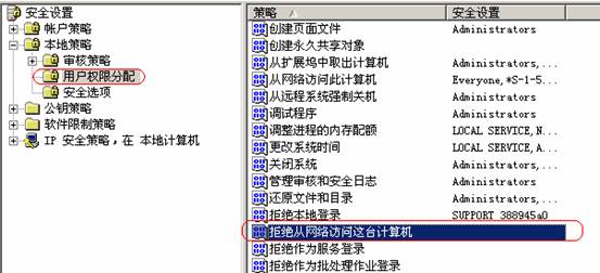 解决:在开始菜单运行中输入secpol.msc启动“本地安全策略”,本地策略 -> 用户权利分配,打开“拒绝从网络访问这台计算机”,删除guest用户。