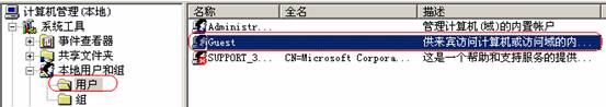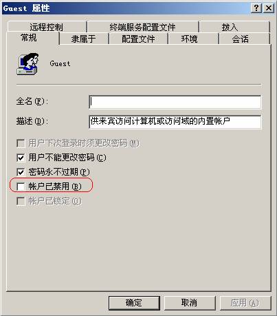解决:在WIN2000/XP系统中:控制面板 -> 管理工具 -> 计算机管理 -> 本地用户和组 -> 用户,在Guest帐户上点击鼠标右键,选择属性,在常规项里取消“账户已停用”