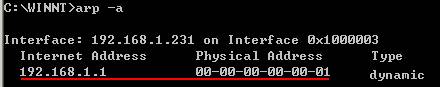 如果正常,输入arp -a 可以确认这一信息: