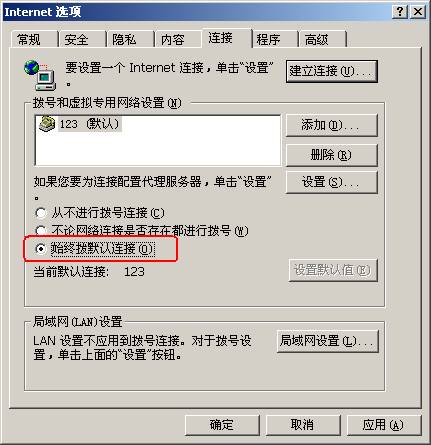 在某些地区,ISP服务商在为用户安装宽带时,安装人员为了方便用户上网,通常习惯将“Internet选项”--“连接”里设置成“始终拨默认连接”(如图1所示),以便让用户一打开IE浏览器输入网址后就自动拨号不用手动连接。但是用户在增加了其他电脑后,购买了路由器进行共享上网,按照说明书上安装好路由器后,在浏览器中输入http://192.168.1.1时却进入不了路由器管理界面,而是弹出如图2所示的拨号连接对话框。这时只需要将之前设置的“始终拨默认连接”改为“从不进行拨号连接”,问题即可得到解决。