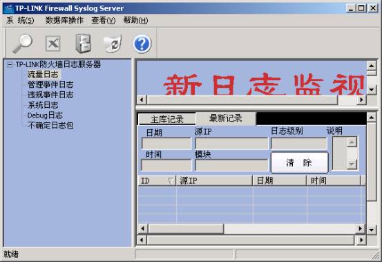 做好上面两步安装操作后,点击“开始”—“程序”――“TP-LINK日志服务器”,可以看到如下登陆界面:
