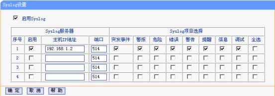 登陆防火墙,打开“系统工具”―“Syslog设置”,输入安装防火墙日志服务器电脑的IP地址,选择好您想了解的日志类型,启用并保存即可。