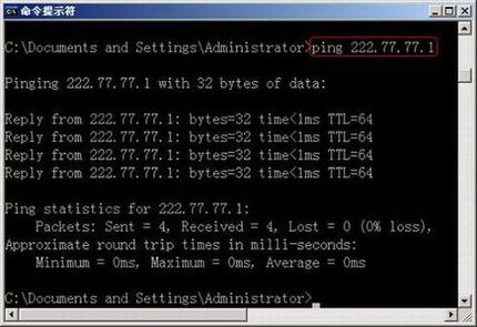 ping命令用于测试IP网络的连通性。只有在安装了TCP/IP协议后才可以使用。如下图所示:
