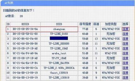 在扫描页面中找到主路由器的无线SSID,并点击 连接。