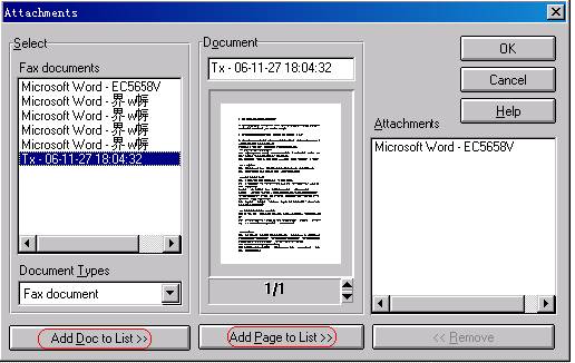 4、 选择一个或多个传真文档,并选择“确定”,您就可选择您先前保存的传真文档: