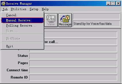 2、 当您准备好接收传真时,从“作业”菜单中选择“手动接收”。“接收管理器”就会提示调制解调器使用当前的连接状态开始接收传真。