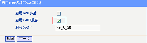 启用WAN口服务勾选,服务名称可任意填写,点击下一步。