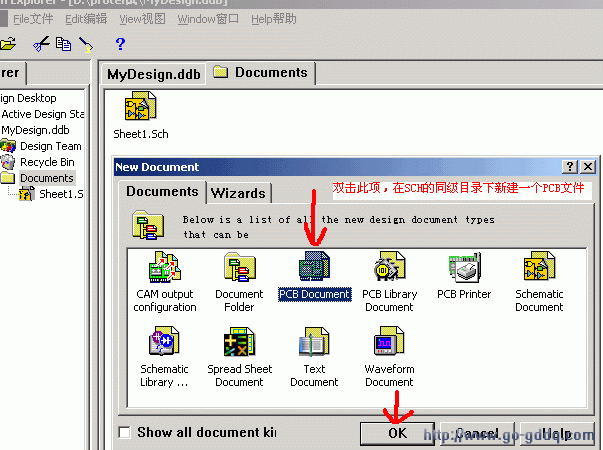 1.在Documents目录下新建一个*.PCB文件,这样做的目的是要让*.SCH和*.PCB在同一目录下