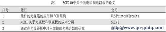 2005 年2 月在美国召开的第十届世界电子电路大会(ECWC10)中关于光电印制电路板的论文见表1;