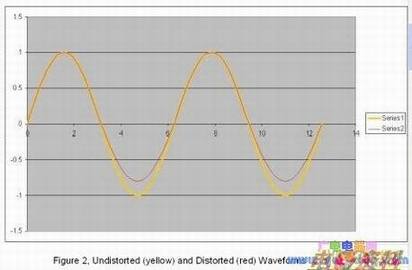 当旁路电容放在PCB的不同位置时,地电流通过不同路径流至各自的旁路电容,即“空间非线性”所代表的含义。若地电流某一极性的分量的很大部分流过输入的地,则只扰动信号的这一极性的分量。而若地电流的另一极性并没施扰,则输入信号电压以一种非线性方式发生变化。当一个极性分量发生改变而另一个极性没改动时,就会产生,并表现为输出信号的二次。图2以夸张的形式显示这种失真效果。
