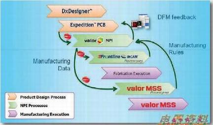 图3 表明流程是不断发展的。从帮助制造商定义规则和实践能力的支持开始,对制造和组装流程中的产量和可靠性产生积极影响。这些D(可制造性设计)规则将被PCB设计师用于设计流程。DFM软件可在设计环境中找出问题,然后由设计师进行纠正。巧合的是,大多数制造商也使用相同的规则和软件来检查接收的设计数据。这样可以确保一旦设计进入制造流程,就可以持续执行,无需设计返工。