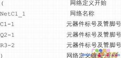 用于表明各元件引脚间的连接关系。网络连接描述格式如下:
