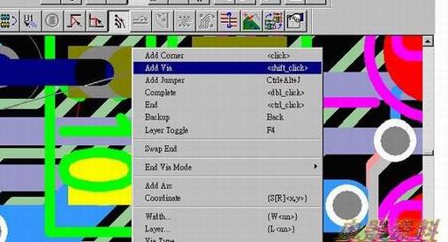 6. 的设计若为HDI ,via需打在pad上,则可按下mouse右key弹出 menu ,select add via 或按shift_click 使via打在pad 上