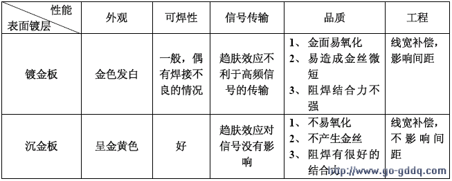 镀金板的其它缺点在沉金板与镀金板的区别表中已列出。