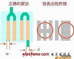 5.如果相邻的焊盘需要相连,首先确认在外面进行连接,防止连成一团造成桥接,同时注意此时的铜线的宽度。