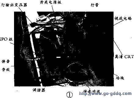 图1为打开后盖之后的高清CRT电视机芯电路实物图。