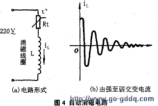 8.自动消磁电路(AOC)自动消磁电路是由正的热敏和消磁线圈串接在一起的电路,如图4(a)所示。消磁线圈通常是安装在显像管外部的磁屏蔽罩上。自动消磁电路并接在220 V交流电源上。接通电源时,由于热敏在冷态时阻值小,使消磁线圈中通入较大的交变电流,这一交变电流使显像管内及其周围产生一个很强的交变磁场,又使热敏的阻值迅速增大。因此,流过消磁线圈的电流也就迅速减小到一个很小的值。这一过程仅需3~4s,在这一过程中消磁线圈中流过由强至弱的交变电流(如图4(b)所示)。 由此产生由强至弱的交变磁场,将显像管内的金属部件受到磁化以后产生的杂散磁场消除。每开机一次,ADC便自动消磁一次。当磁场强度衰减至0.3安匝以下时,消磁线圈中残留的磁场对电子束运动没有影响。