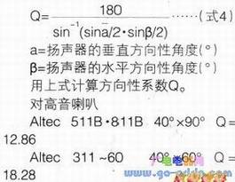 (Altec发表的值是在个频率的方向性图上,扬声器轴上到-6.0dB的角度作为有效角度,由此计算Q而得的。)