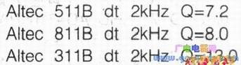 低音扬声器的Q是带AltecA-7装置的825B短喇叭的低频反射箱,及带两个低音喇叭组件的双式喇叭815A之Q,用数式表示如下: