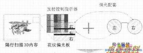 在3D电视中,利用粘贴在画面上的偏振光栅,将制作不同的左右影像的偏光状态分离到偏光眼镜上,其流程简图如图所示。