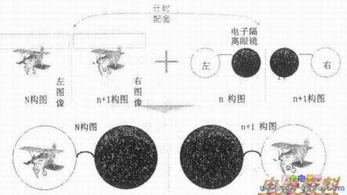 这种快门眼镜式又称3D快门式,采用时分方式,在与之相配套的控制软件作用下,屏幕上同步交替播放左右眼视差影像,主动式快门眼镜同时交替地阻碍左眼和右眼,这样左右眼就能分别看到对应的视差影像,如图所示。只要这个交替的速度足够快(要求显示器的刷新率较高,最高达120帧每秒),大脑就会将两幅图像融合成一体,从而产生单幅图像的3D深度感,并且不会有闪烁感。
