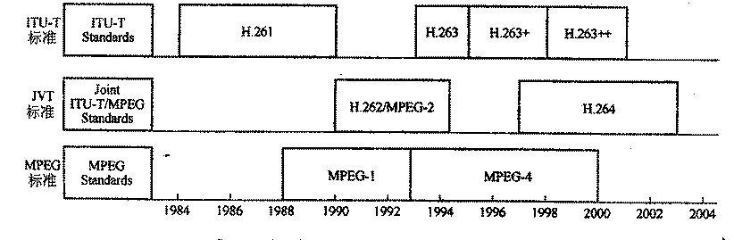 数字音视频标准都是在需求的推动下,适应一定时期的技术发展水平而制定的。下图所示是制定这些标准的大体进程。