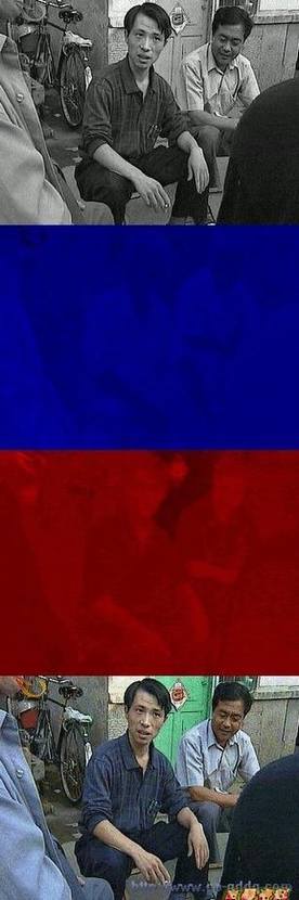 空谈了这么多,来点更直观的吧!我们来看看一帧实际的图像。右边这帧图像是用武汉万德数码技术有限公司生产的VC302嵌入式视频捕捉卡得到的,信号源是电视机的视频输出。图像的像素分辨率是320*240(采集了一场中的288行,每行360个像素,但只从中截取了240行,每行截取了320个像素),第一幅是Y分量描述出的黑白图像,第二幅是U分量描述,第三幅是V分量描述,第四幅是YUV合成后的彩色图像。黑白图像与如此模糊的UV分量图合成后竟然可以得到色彩这么真实的彩色图像,你是不是有点难以相信?我也不敢相信,但这就是事实!从这些图的比较中我们可以得出这样的结论:1、Y分量基本上保留了彩色图像的轮廓细节,其分辨率是较高的。2、UV分量主观感觉十分模糊,分辨率低,只是大约地描述了整块的色彩,这正是所谓的“大面积着色”。3、我们在观察合成的彩色图像的时候并没有觉得图像的色彩模糊,这说明人眼对色彩细节的分辨能力是多么差!