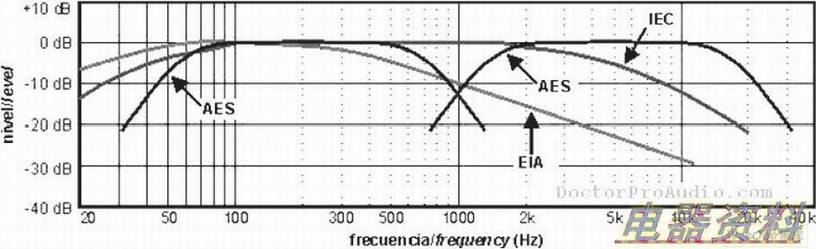 EIA RS426-A 标准:由美国电子工业协会颁布,所采用的测试信号也是6 dB 峰值因数的粉红噪声,但使用的节目滤波与IEC 标准有差别,它的低频段成分较高,而高频成分要低得多,测试时间为8 小时。