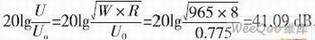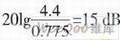 ,然后算出输入端的电压值为87.86÷20=4.4 V,换算成电压分贝值为