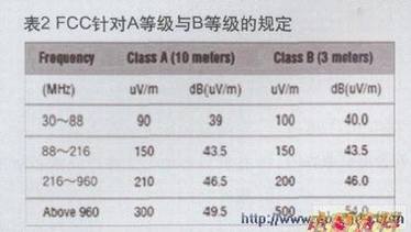 FCC提供了两种等级的辐射层级: A等级与B 等级(表2) 。A 等级的产品是适用于商业、工业与工作环境的数码产品, 而非消费者日常或在家使用的产品;B 等级的数码产品则不仅适合家用, 也可在其它环境下使用" 大致来说, B 等级的标准较A 等级更为严苛。