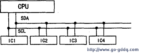 CPU输出一根数据线(SDA),一根时钟线(SCL)。同时,被控制的各个集成块1~IC4同样也有一根数据线和一根时钟线,它们彼此并联在一起,CPU向各IC发出指令,就能控制它们启动各种不同功能。