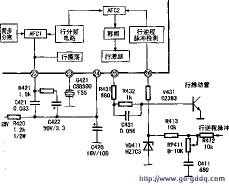 (2)为了保持和电视台同步、,任何行振荡集成电路都有行反馈脉冲输入脚。一旦行反馈脉冲丢失,早期的集成电路仅表现为行不同步;现在的集成电路对行脉冲还用作沙堡脉冲形成。所以造成的故障现象往往是无光。