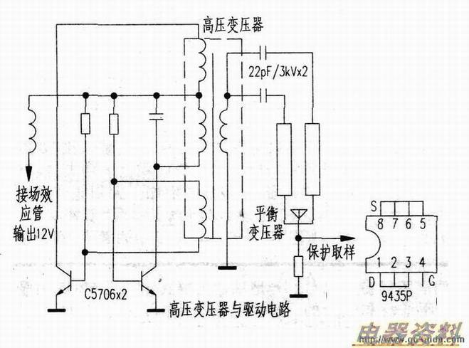 (10)脚高时.NPN管导通,场效应管输出12V电压供给逆变电路,背光灯亮;低电平时,管导通,关闭场效应管,断开逆变电路的供电,背光灯灭。