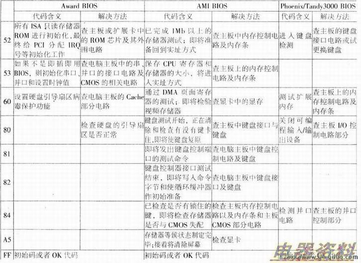 电脑主板的BIOS在每次开机时,会对系统的、、键盘、视频部分、硬盘、软驱等各个组件实行严格测试,井分析硬盘系统配置,对已配置的基本I/O设置进行初始化,一切正常后,再引导操作系统。其显着特点是以是否出现光标为分界线,电脑开机后先对关键性部件进行测试,若关键性部件发生故障强制机器转入停机,显示器无光标,则屏幕无任何反应;若关键性部件检测通过.则对非关键性部件进行测试,如有故障,机器也继续运行,同时显示器显示出错信息。当机器出现故障,尤其是出现关键性故障,屏幕上无显示时,将诊断卡插入扩充槽内,根据卡上显示的代码,参照机器所属地BIOS类型,再通过查出该代码所表示的故障原因和部位,就可清楚地知道故障所在。