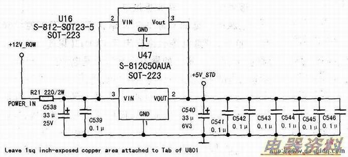 待机状态下,的8v待机经主板DC-DC稳压块U16(下见图)产生5V电压加至电源管理块U48的①脚,U48的⑥脚输出低电位,此时电源板的CON3的⑦脚为低电位,电源无12V、24V输出,同时低电平加至Q34的b极,不动作。整机只有电源板的待机和主板的U16、U48在工作,从而降低整机功耗。