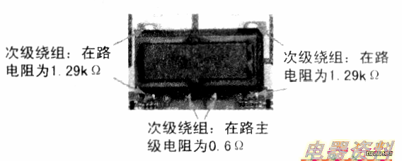 电阻测量法特别适合对逆变器中输出变压器故障的判定。因为变压器失效一般表现为初、次级绕组开路或短路,即初、次级绕组阻值变大或变小,由于初级绕组线径大、次级绕组线径小,所以,变压器失效绝大多数表现为次级绕组开路或短路。而任一变压器失效均可能引起所有功率输出电路不工作,很难用电压检测法来判断故障,维修时使用正确的电阻检测法可方便地找出故障原因。如下图所示,用电阻测量法对输出变压器进行故障判定时,应当首先找到变压器的初、次级绕组,用测量阻值。如三星LTA320WT-L16屏逆变器,若测得0.65Ω<初级绕组阻值<0.55Ω,1.35kΩ<次级绕组阻值<0.25kΩ,可判断该变压器已失效,需更换。T1~T8变压器的型号一样,初、次级绕组的电阻值基本相同,可对比测量。