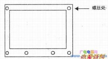 第4步:将电源开关拨至“OFF”处,取下固定铝盒的7颗螺丝,将铝盒取出。用平口小螺丝刀按前述撬屏塑胶盖的方法撬开铝盖,使液晶屏与背光板分离。这时,千万要谨慎小心,不要将连在屏上的排线弄断或令其脱落,将屏放好后,再将屏背光板的12V电压插头从印刷板上拔下,就可单独检查背光板的线路了。