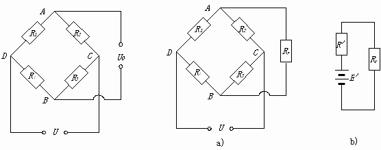当电桥的输出信号较大,输出端又接入电阻值较小的负载如检流计或光线示波器进行测量时,电桥将以电流形式输出,如图1.4.2a所示,负载电阻为Rg由图中可以得