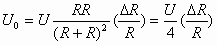 当桥臂R1为与被测量有关的可变电阻,且有电阻增量ΔR时,略去分母中的ΔR项则对于输出对称电桥, R1=R2=R,R3=R4=R